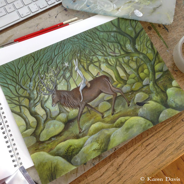 Talking of ice, I didn't get around to showing you the other icy art work that I completed a while ago. Again inspiration from Lapland. The title is 'Each breath a Star' and it is available in my shop as a print here.