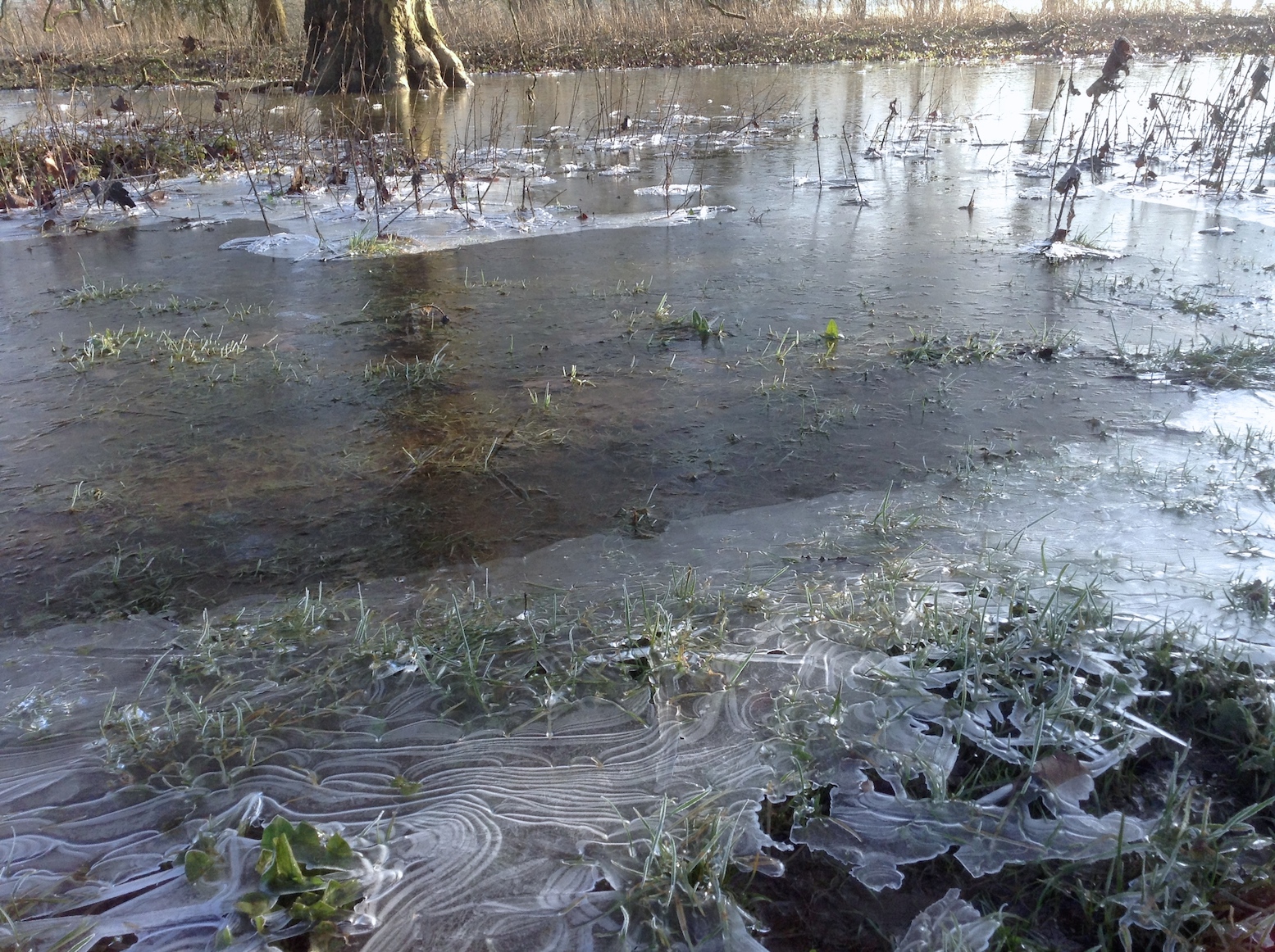 The surface of the pools were frozen into beautiful patterns. Etched windows to a transient watery world beneath.
