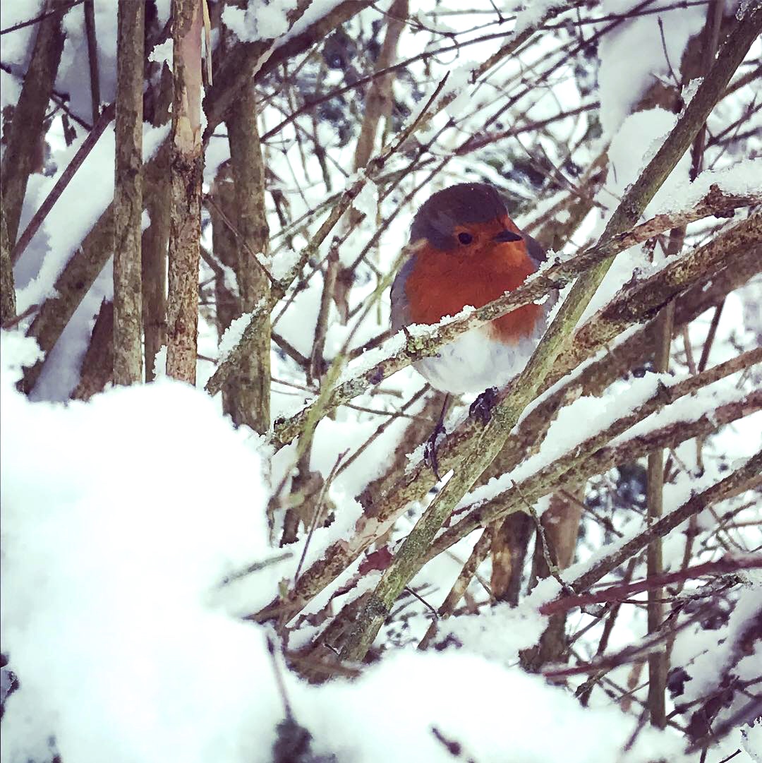 Gently and softly it came. The rooms became brighter inside, and the distant hum of traffic stopped. Quietly cocooned, the garden was wrapped up in white. Snow had fallen.